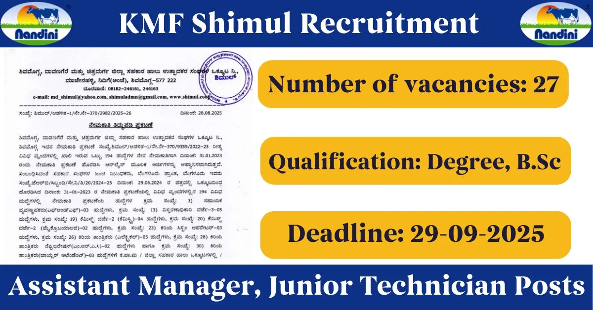 SHIMUL Recruitment 2025: Apply Online for 194 Vacancies in Shivamogga, Davangere & Chitradurga Milk Union